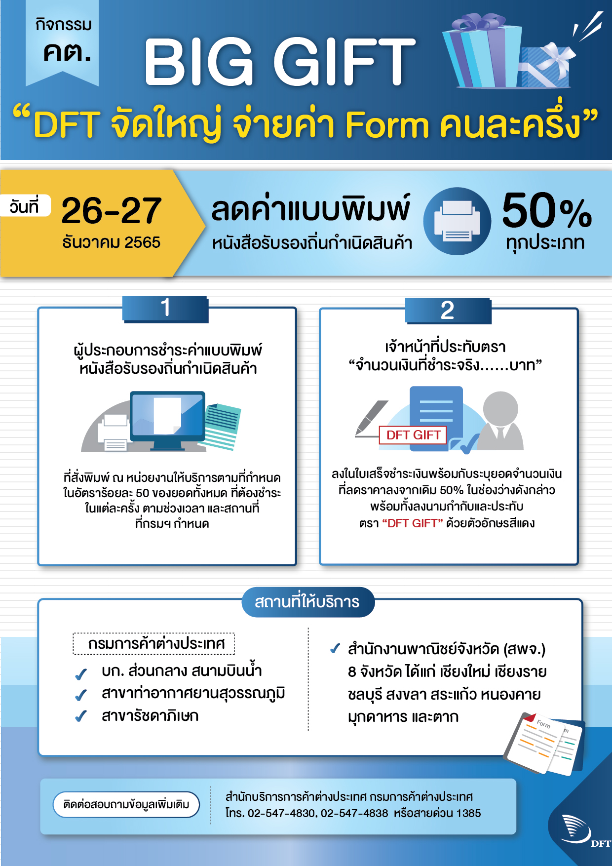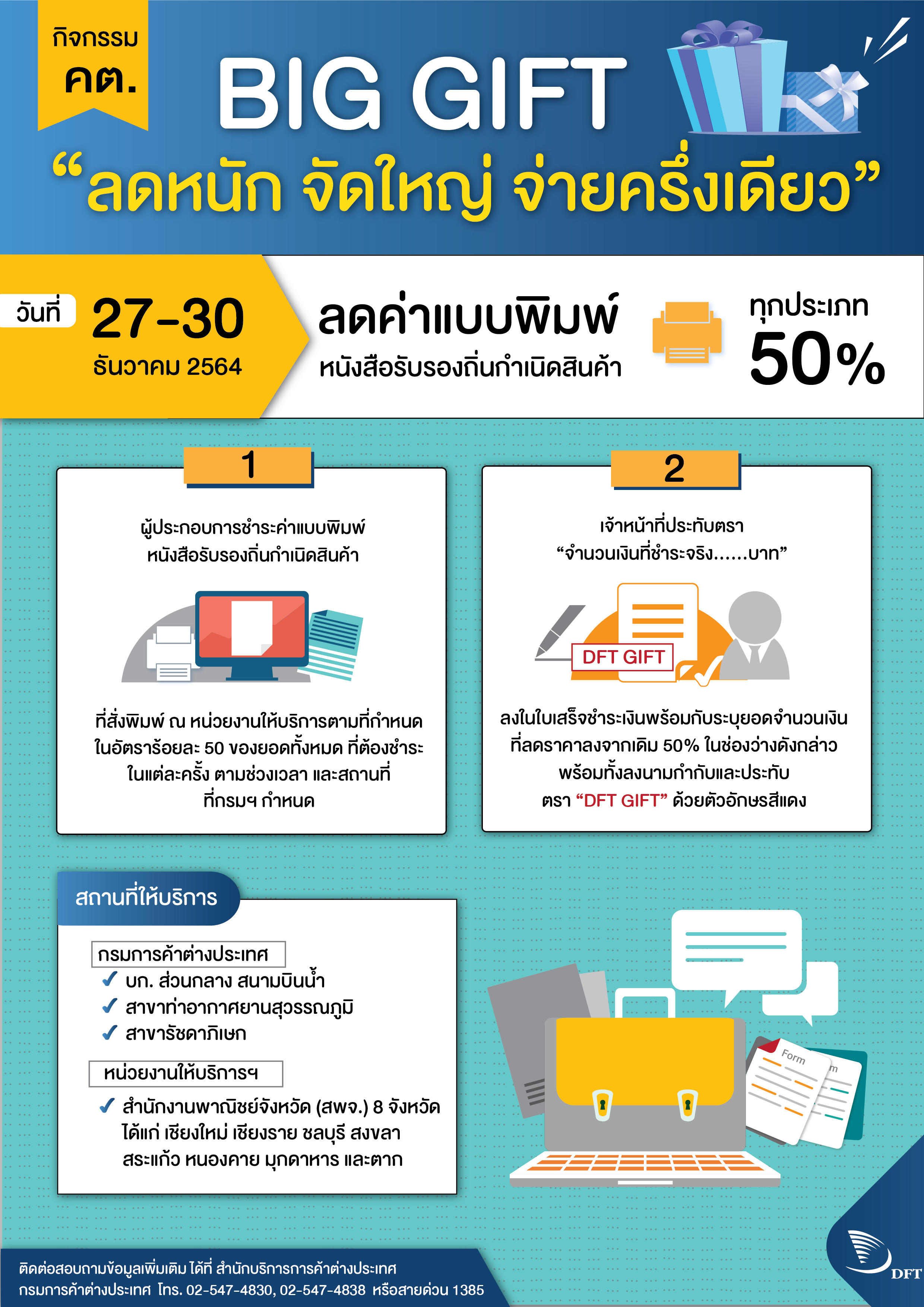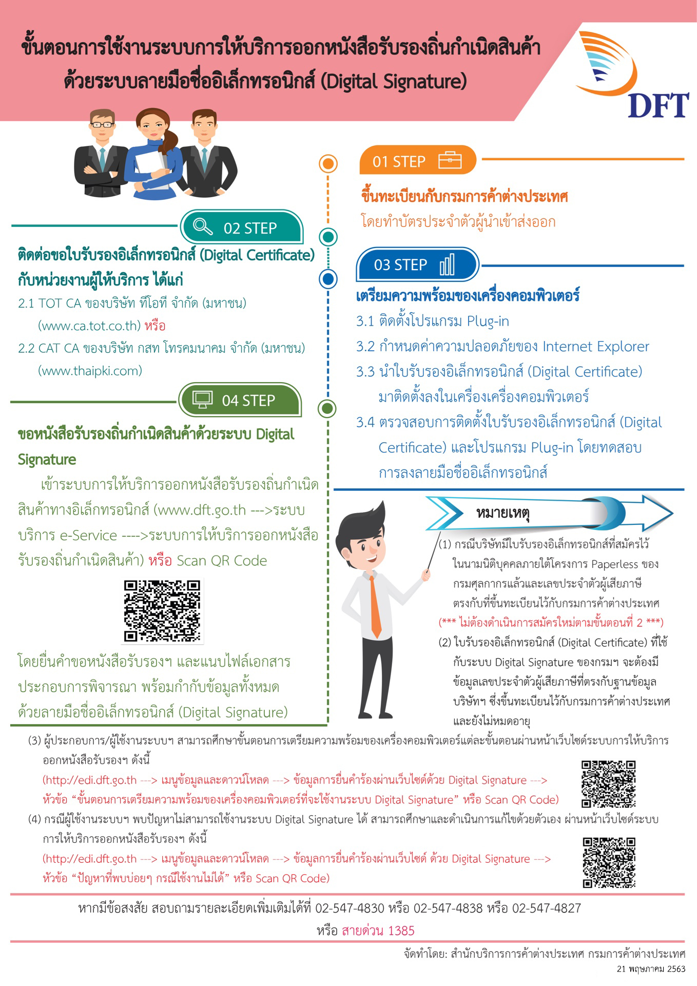 หากมีข้อสงสัย สอบถามเพิ่มเติมได้ที่ 0 2547 4830, 0 2 547 4838, 0 2547 4827, 0 2547 4810 และ สายด่วน 1385