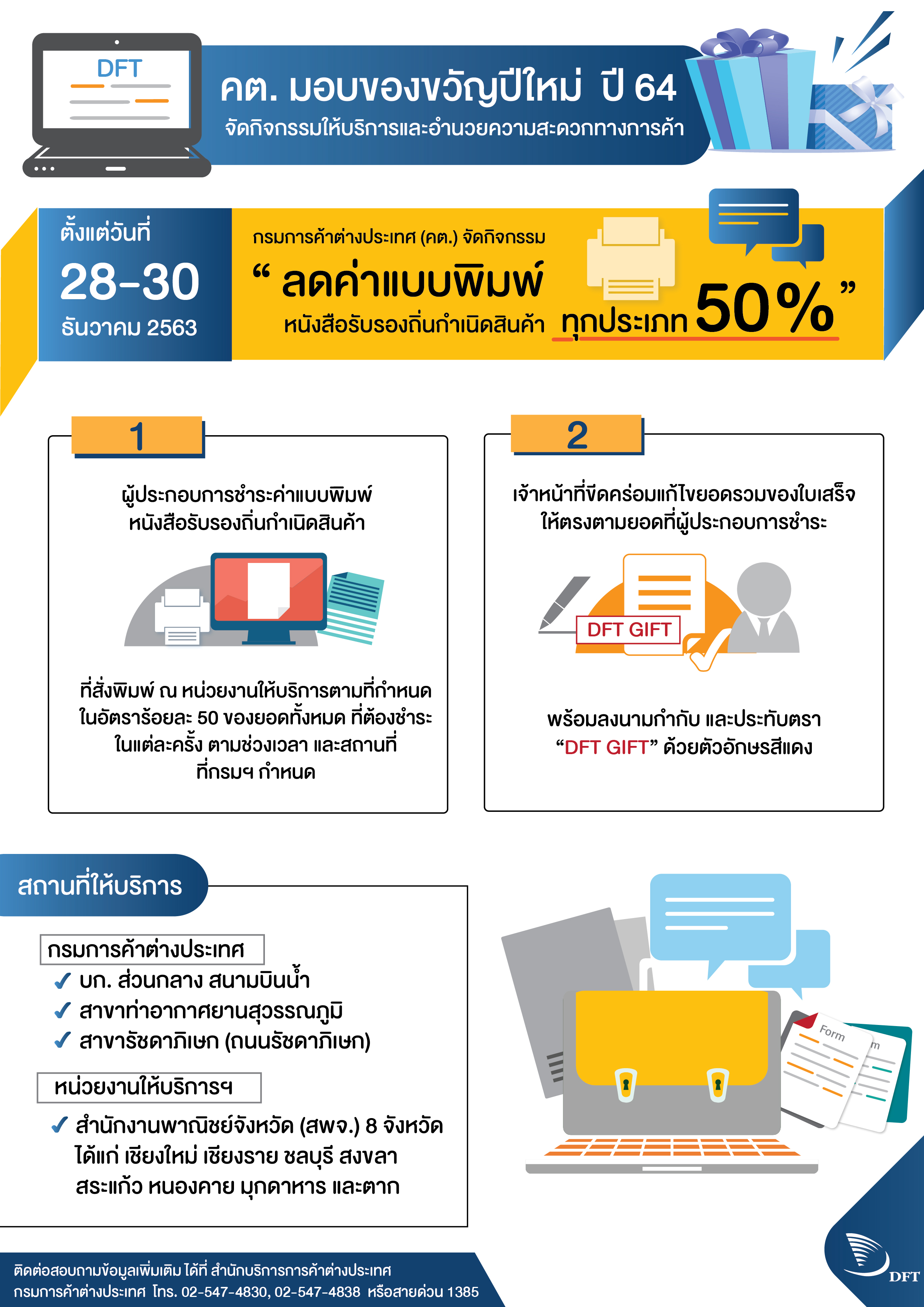 1. "ปิด การให้บริการของสำนักบริการการค้าต่างประเทศ ส่วนกลาง(สนามบินน้ำ) สาขาสุวรรณภูมิและรัชดาภิเษก