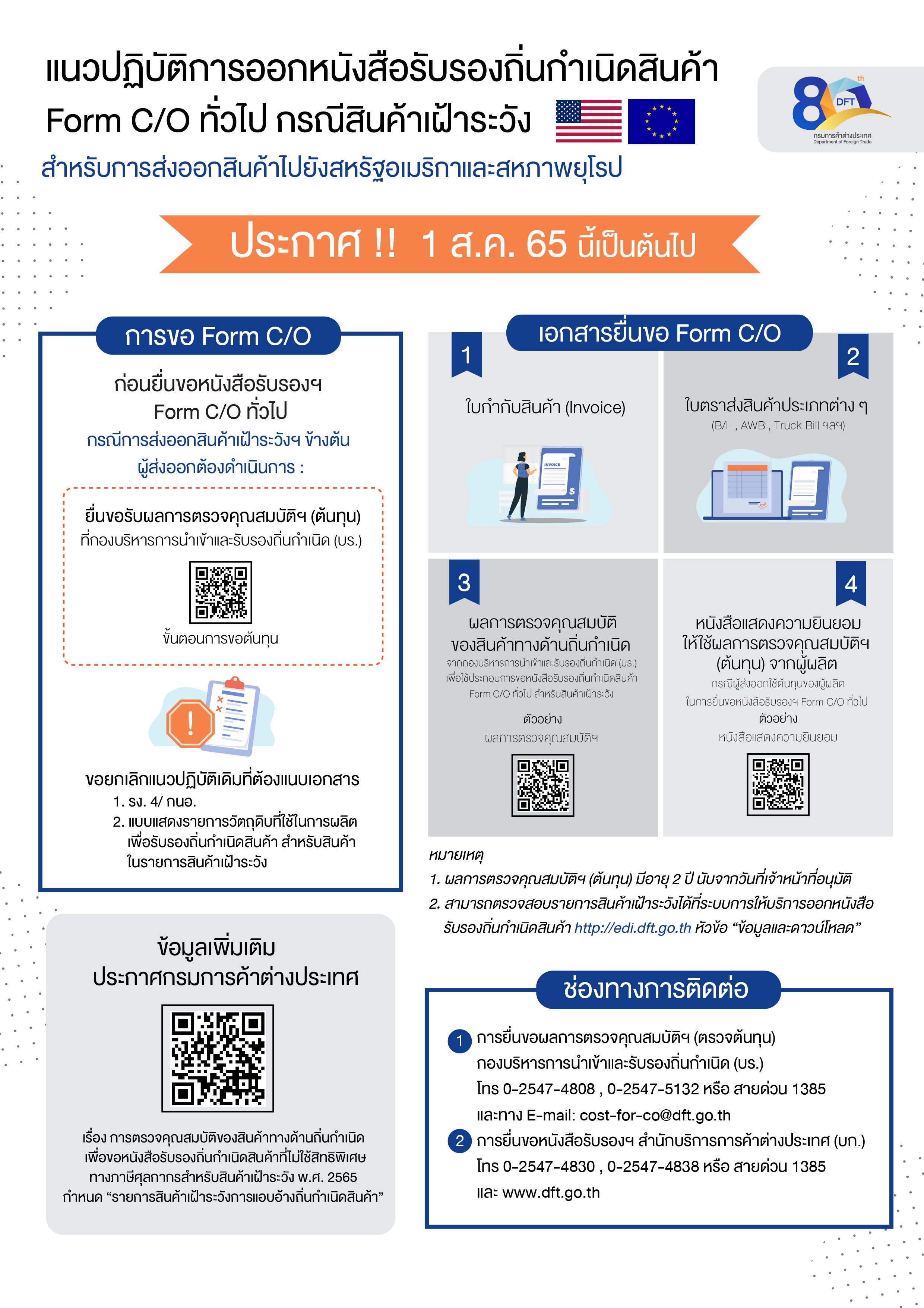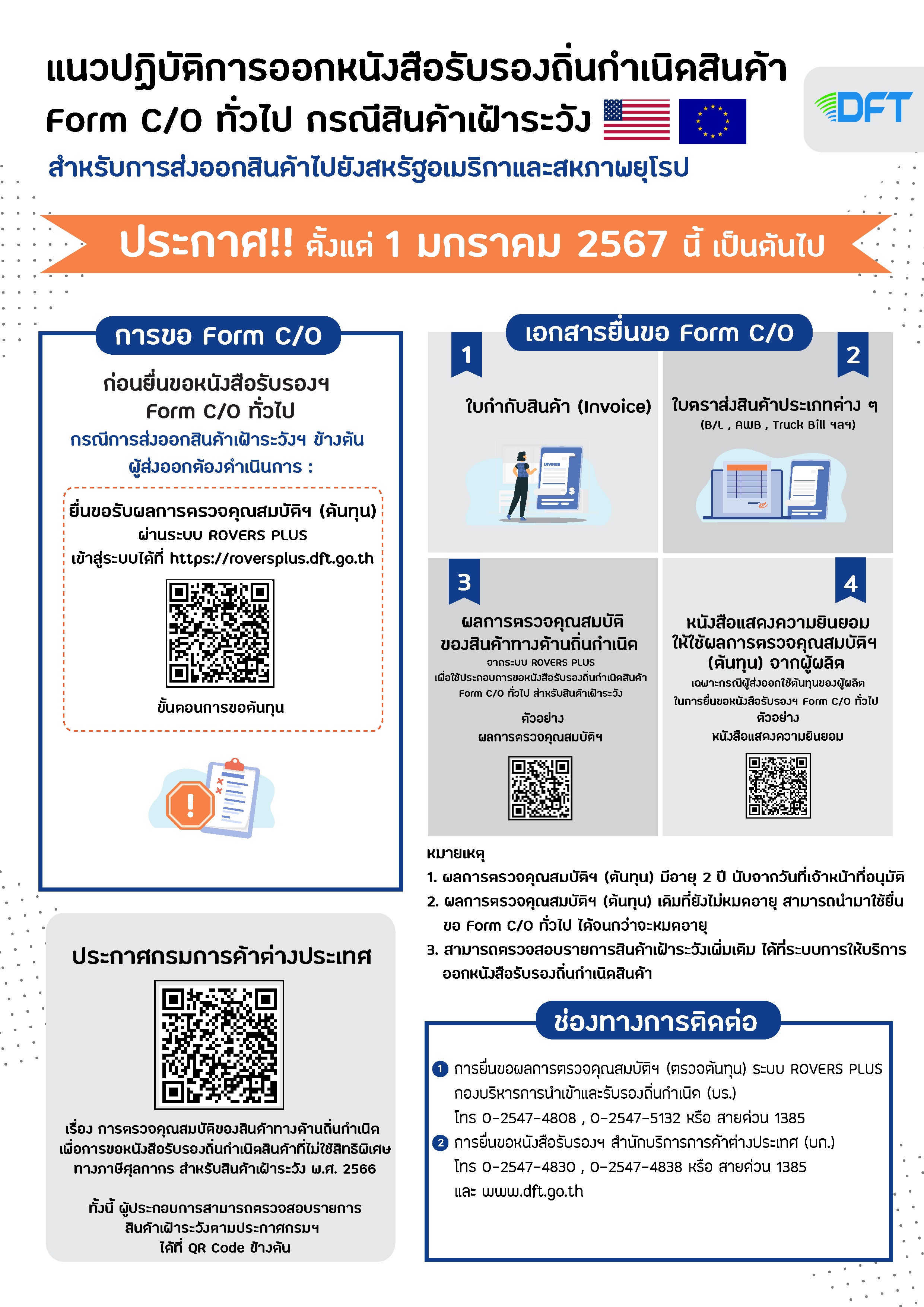 • ศึกษาแนวปฏิบัติในการขอ FORM C/O ฉบับที่ 2 โดยคลิก ดาวน์โหลดที่นี่ หรือ หากมีข้อสงสัย สอบถามรายละเอียดได้ที่ 0 2547 4830 หรือ 0 2547 4838 หรือ 0 2547 4827