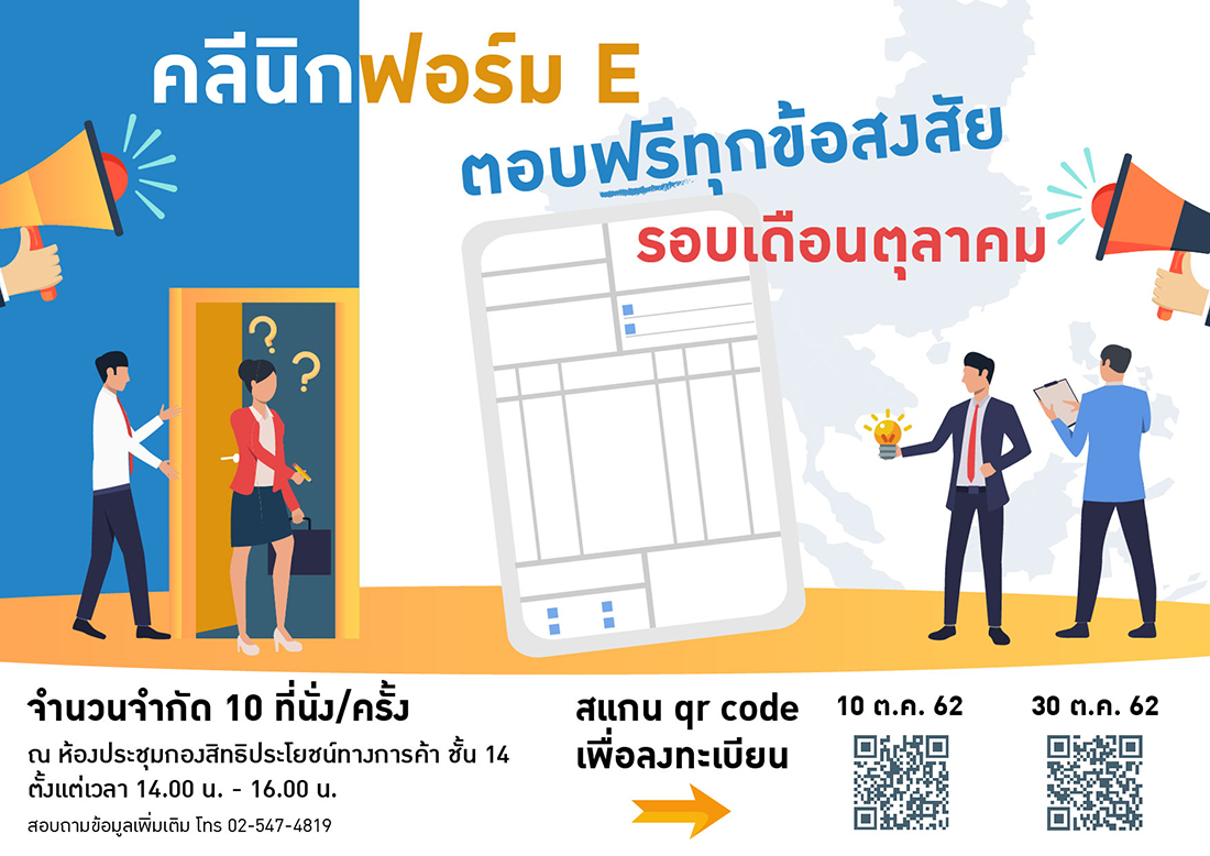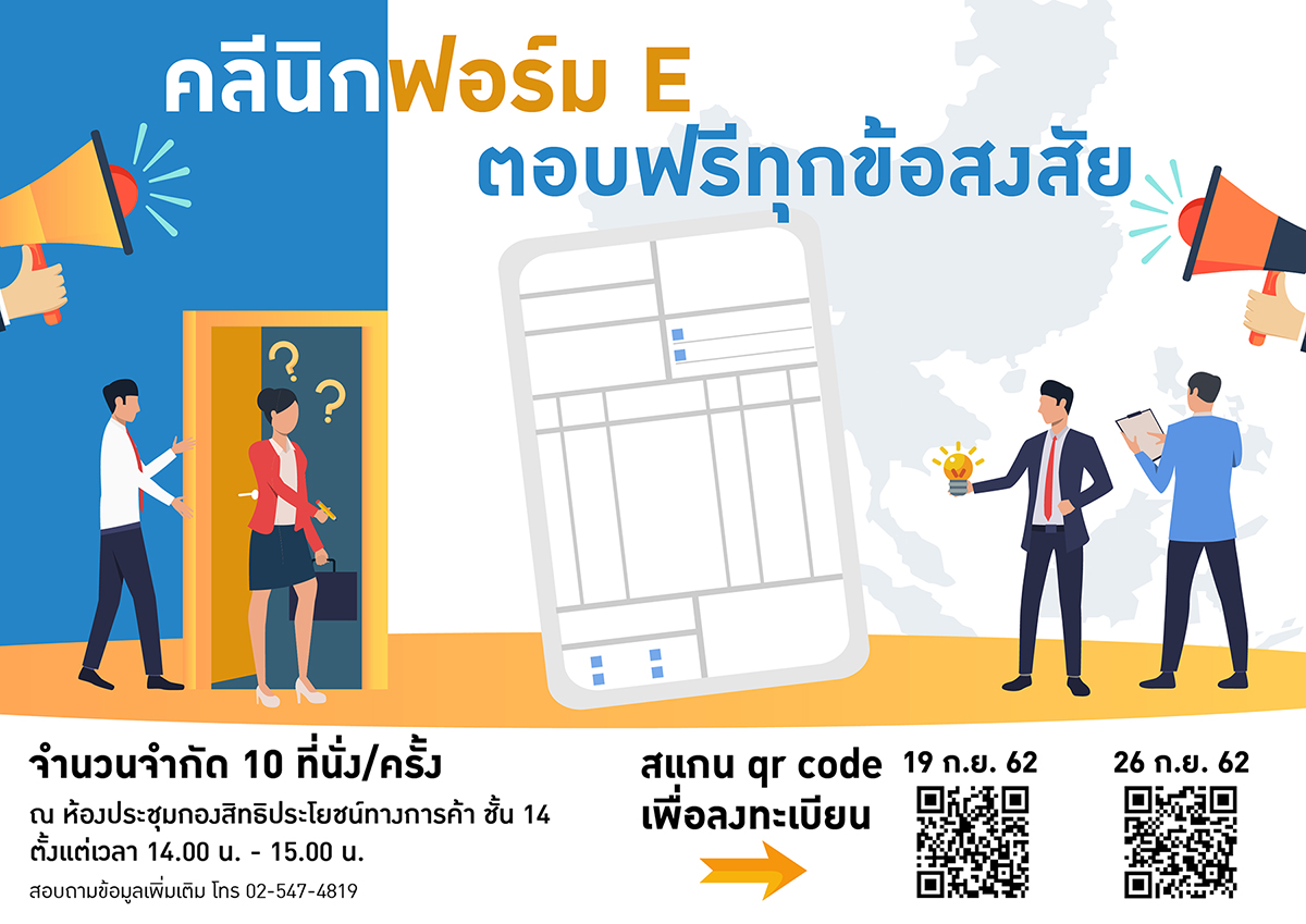 กรมการค้าต่างประเทศ ขอเชิญเข้าร่วมฝึกอบรม เรื่อง "พัฒนาผู้ประกอบการ และเจ้าหน้าที่ส่วนภูมิภาคเพื่อรองรับการออกหนังสือรับรองถิ่นกำเนินสินค้าแบบไร้กระดาษ (e-Form)" เพื่อเสริมสร้างความรู้ ความเข้าใจ และเตรียมความพร้อมแก่ผู้ประกอบการดำเนินการตามแผนการยกระดับงานบริการการค้าต่างประเทศ