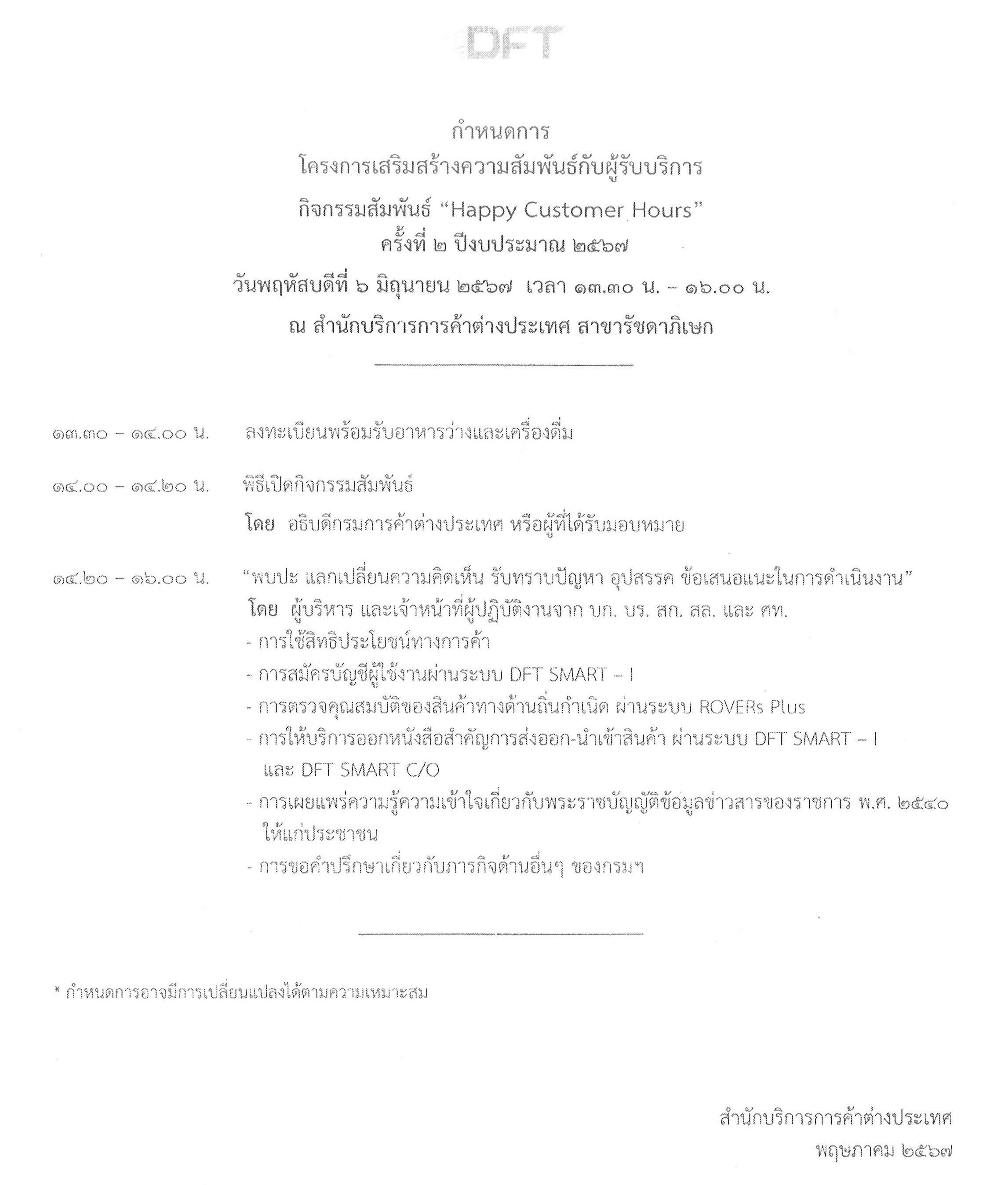 กิจกรรมสัมพันธ์ “Happy Customer Hours” ครั้งที่ 3/2568