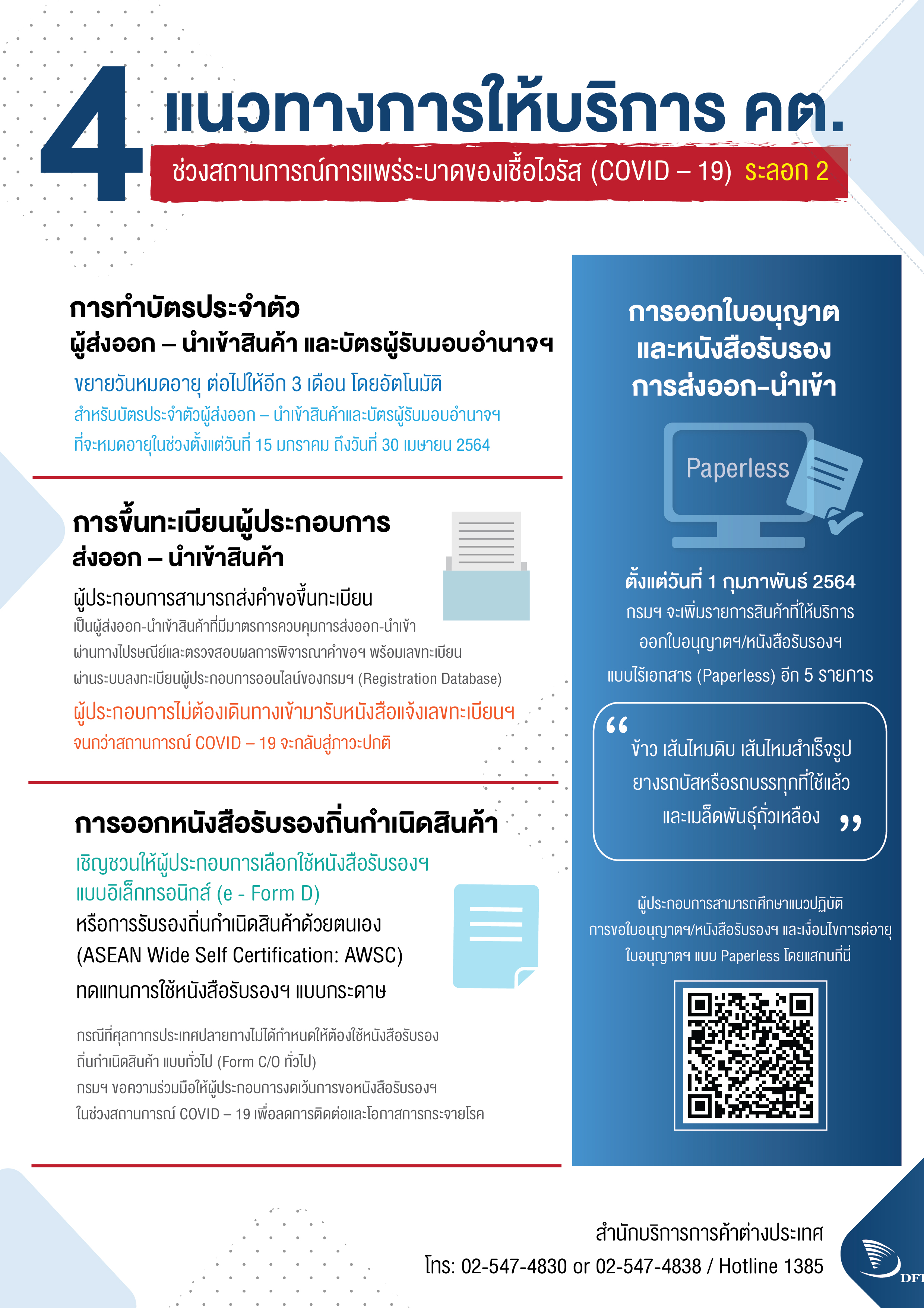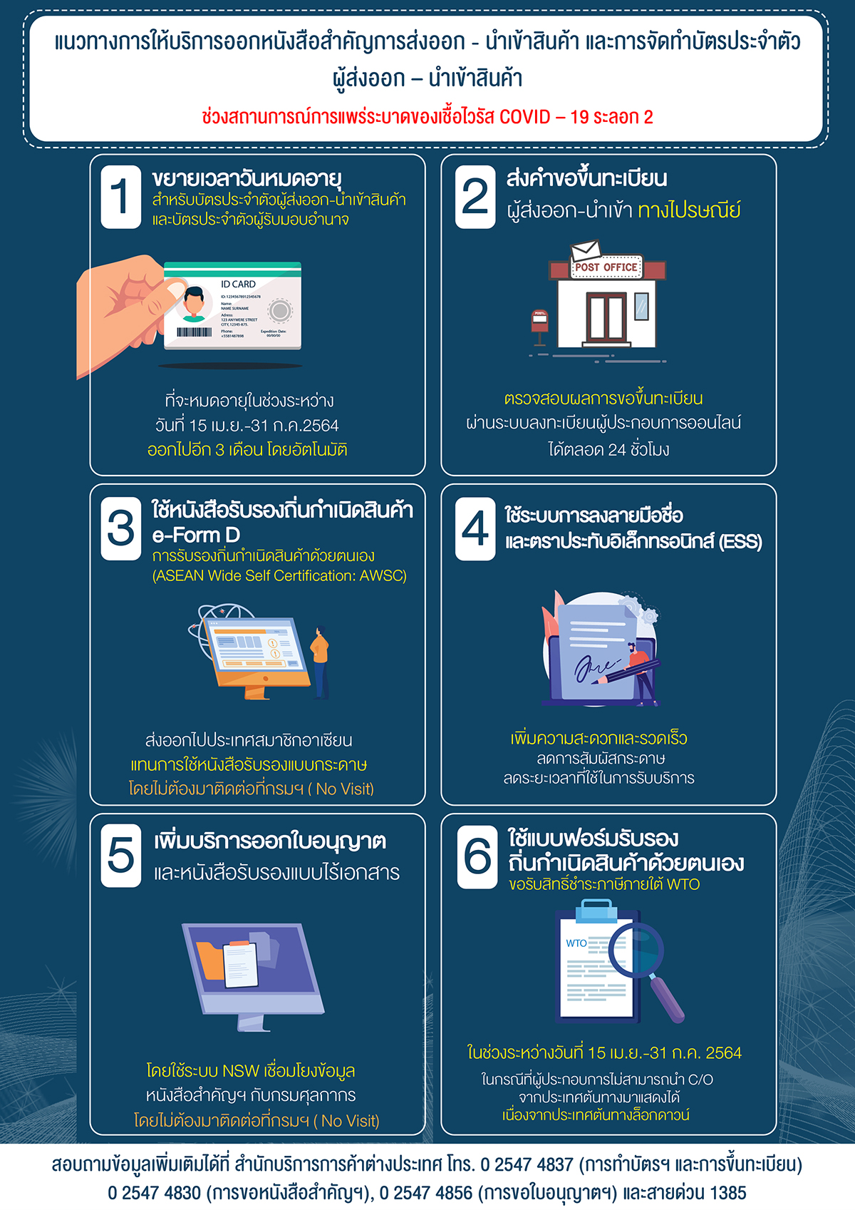 3. ปิด การให้บริการของสำนักบริการการค้าต่างประเทศ ส่วนกลาง(สนามบินน้ำ) สาขาสุวรรณภูมิและรัชดาภิเษก