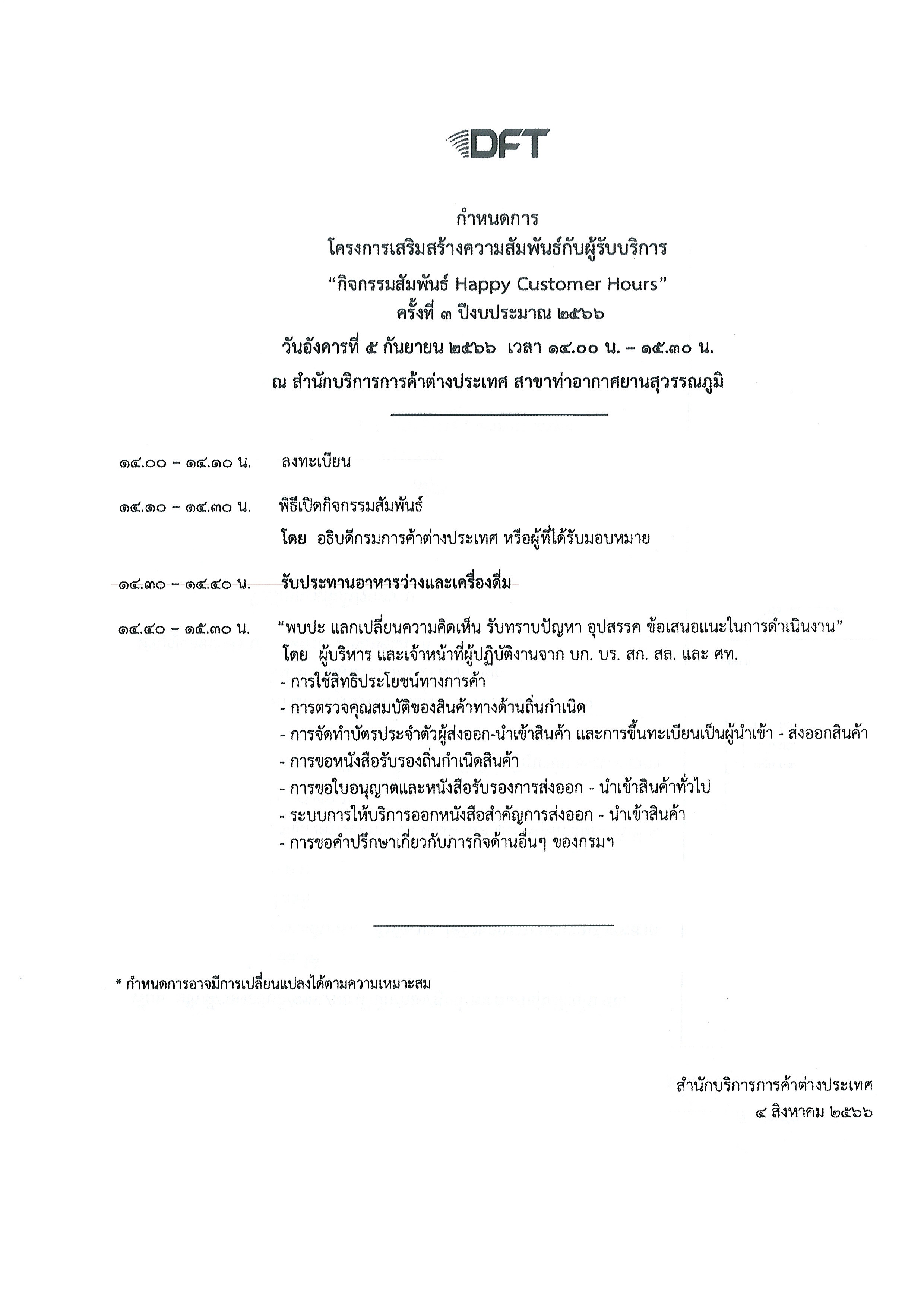 กรมการค้าต่างประเทศ ขอเชิญเข้าร่วม กิจกรรมสัมพันธ์ “Happy Customer Hours” ครั้งที่ 1/2561